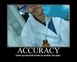 This is a better demotivator than the second demotivator. This one (slightly) over emphasizes the pressure put on students by themselves and their advisors - sometimes one screw-up can seemingly add years to a research project.
